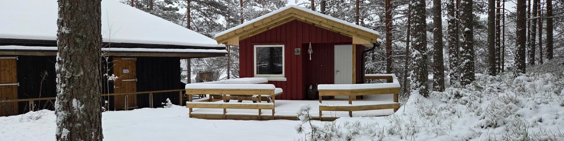 *Winter 2025-2026: cabin 3 is under construction from a basic 3 person to a comfort 2 person cabin with terrace on front and back side. Outside work is finished. Description and pictures from inside will follow when finished.*