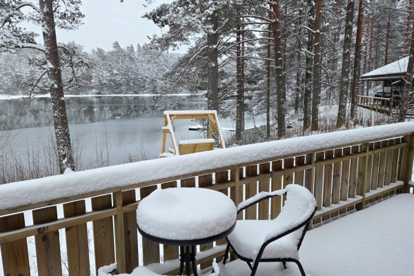 Van alle gemakken voorzien op een mooie plek met vrij uitzicht over de rivier. Vanaf de grote veranda kun je heerlijk van de ochtendzon genieten. In de avond bespeur je wellicht een bever aan de oever van de rivier? De hut heeft een woonkamer met zithoek en een keuken met (uitschuifbare) eettafel. De keuken met gootsteen is uitgerust met koelkast, fornuis (met kookplaat en oven), magnetron, koffiezetapparaat, waterkoker, kookgerei en serviesgoed. De hut heeft 2 slaapkamers, waarvan één met een tweepersoonsbed en één met een familie stapelbed. De badkamer is voorzien van een toilet, douche en wastafel.